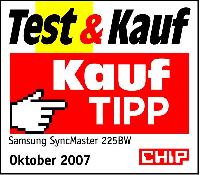 Der SyncMaster 225BW konnte bei der Redaktion besonders durch das „gefällige Silber“, den dreh- und höhenverstellbaren Fuß sowie die Unterstützung des Kopierschutzes HDCP punkten. Fazit zum 225BW: „Seine Leistungen sind rundum gut, was ihn zu einer Empfehlung für jeden Einsatz macht.“ Die „CHIP Test & Kauf“ testet als monatlicher Einkaufsführer aktuelle Consumer-Technik in den Bereichen Computer, Mobilfunk und Unterhaltungselektronik. Das Magazin beurteilt Produkte nach Preis und Qualität, gibt Kaufempfehlungen und erscheint in Deutschland mit einer Auflage von rund 75.570 Exemplaren.