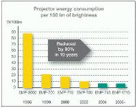 Auch in anderen Produktkategorien nutzt Epson alle Möglichkeiten, den Energieverbrauch auf niedrigem Level zu halten, ohne Einbußen an die Qualität in Kauf nehmen zu müssen. Beim Epson Scanner Perfection V500 zum Beispiel reduziert der Einsatz einer weißen LED als Lichtquelle den Stromverbrauch beim Scannen deutlich: Sie verbraucht mit einer Leistung von 16 Watt weniger Energie als eine handelsübliche Glühbirne. Bei Projektoren holt Epson mit seiner E-TORL-Lampe (E-TORL steht für Epson Twin Optimized Reflection) 20 Prozent mehr Leistung heraus. Insgesamt ist der Stromverbrauch von Epson Projektoren im Vergleich zu vor 10 Jahren um 90 Prozent gesunken.