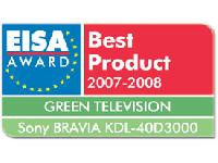 Die European Imaging and Sound Association (EISA) hat den Sony LCD-Fernseher BRAVIA KDL-40D3000 in der Kategorie „European Green Television 2007-2008“ zum Sieger gekürt.