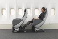 Die geneigte Lehne des JAL Skyshell Sitzes ermöglicht den Passagieren Privatsphäre und maximalen Komfort ohne die Beinfreiheit anderer Passagiere einzuschränken. Natürlich gibt es auch komfortable und komplett verstellbare Kopf- und Fußstützen.