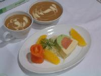 Als exquisite Vorspeise werden in der Business Class geräucherte Entenbrusttranchen an Mango-Couscous Salat serviert. Der von Renee Rischmeyer kreierte Hauptgang ist ein Rindsfilet mit Parmesankruste an asiatischem Gemüse und Bärlauchrisotto. Zum Dessert erwartet die Gäste ein Schokoladenmousse mit Passionsfrucht und Banane.