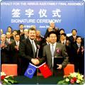 The joint venture contract for the Airbus A320 Family Final Assembly Line (FAL) in Tianjin was signed today in Beijing between the Chinese Consortium and Airbus in the Great Hall of the People. Visiting German Minister of Economics and Technology Michael Glos and Airbus Chief Operating Officer Fabrice Brégier attended the signature ceremony.